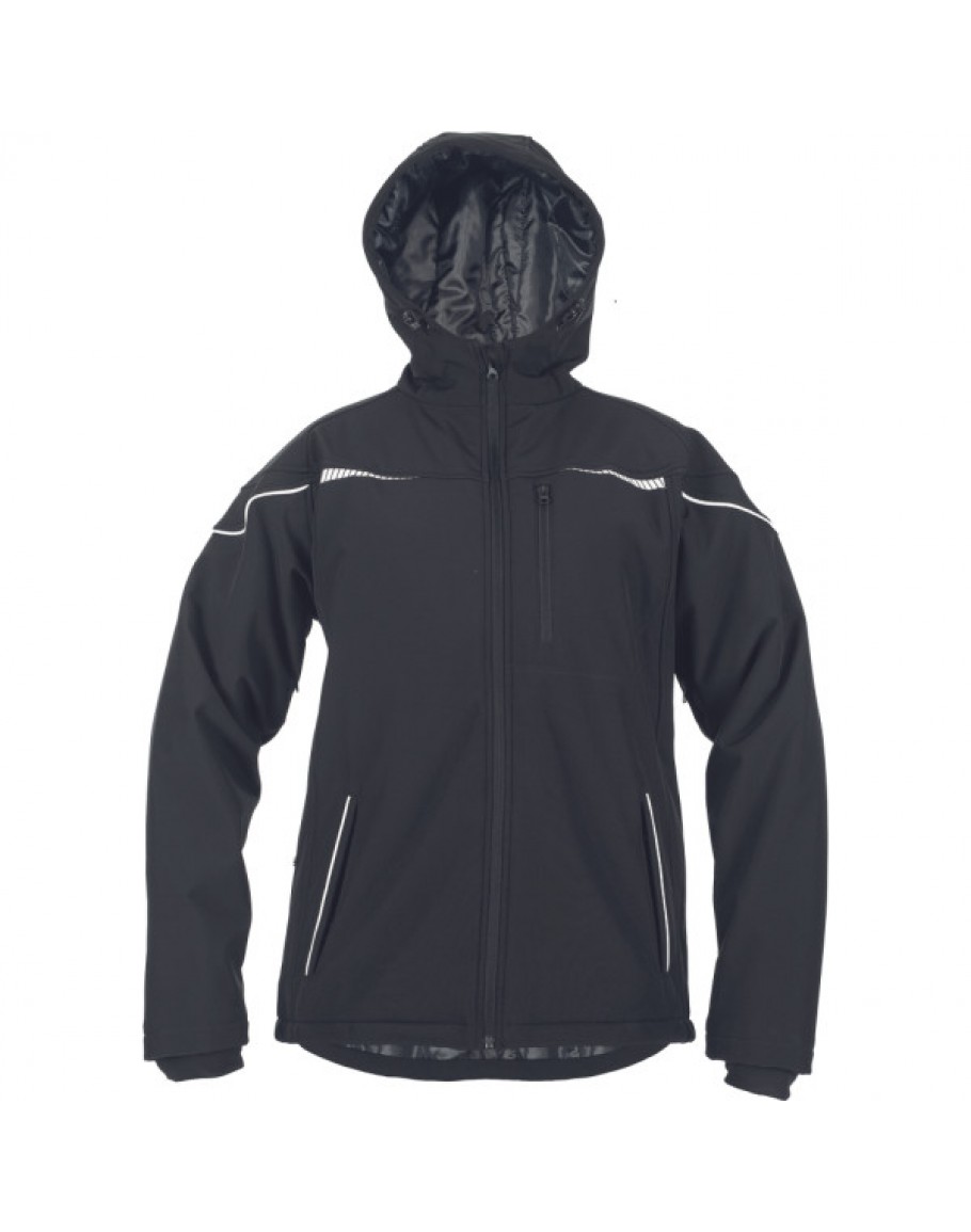 • waterproof winter parka with detachable insulated hood • zip fastener with Velcro flap cover • two zipped side pockets and two chest pockets • two inside pockets • elastic sleeves cuffs • reflective details and piping